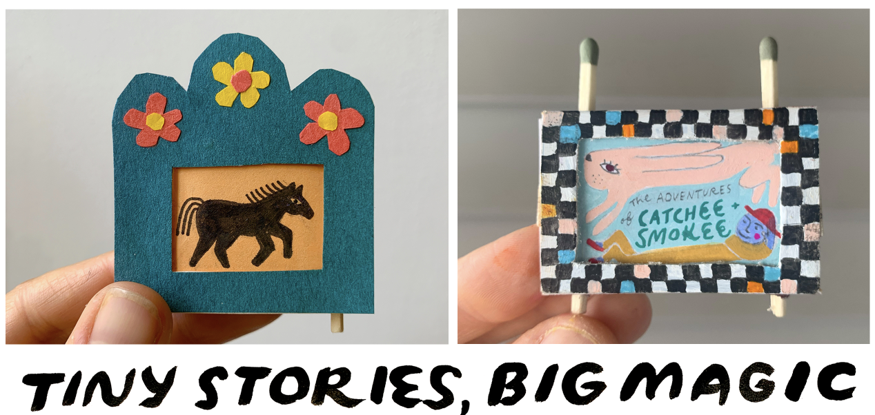 Join sister-makers Nina and Sonya from The Far Woods Creative Studio for a hands-on workshop where we’ll be storytelling in miniature; transforming basic household matchboxes into charming folk-art moving pictures that tell a story by hand-cranking a long, illustrated scroll through a viewing window.